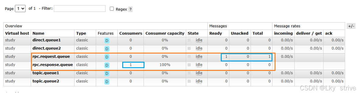 public class Constant { public static final String HOST = "44.34.51.65"; public static final int PORT = 5672; public static final String USER_NAME = "lk"; public static final String PASS_WORD = "lk"; public static final String VIRTUAL_HOST = "study"; //工作队列模式 public static final String WORK_QUEUE = "work.queue"; }