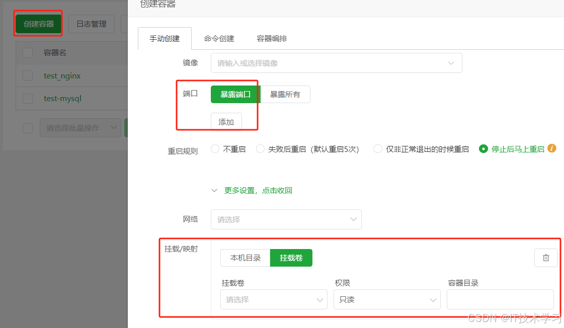 端口映射,前部分端口是宿主机端口,后部分端口是容器端口。