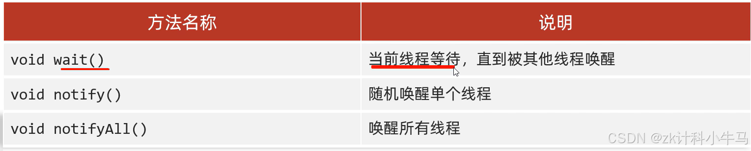 方法的线程会释放它持有的锁,并进入等待状态,直到它被其他线程通过调用notify()
