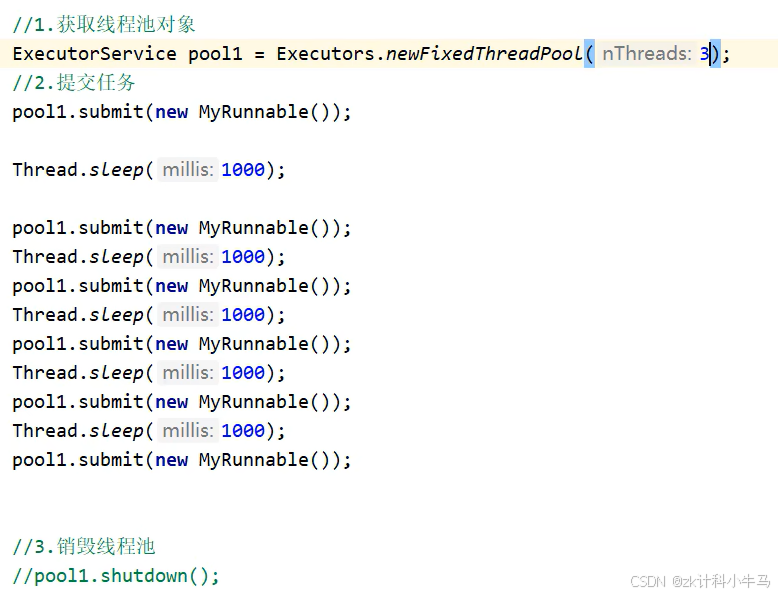 使用这个线程池就提交任务就行pool.submit(线程任务)