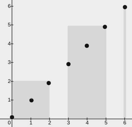 输入:points = [[0,0],[1,1],[2,2],[3,3],[4,4],[5,5],[6,6]], w = 2