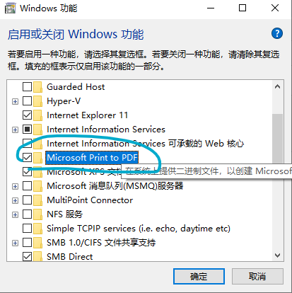 运行输入 optionalfeatures 打开可选功能,钩上 [Microsoft Print To PDF]