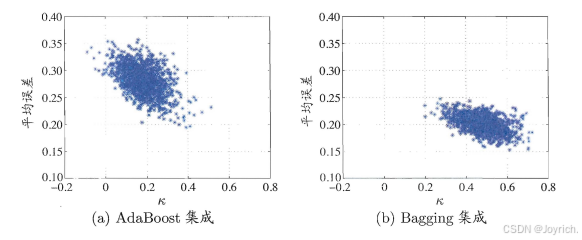 上式明确提示出:个体学习器准确性越高、多样性越大,则集成越好.上面这个分析称为“误差-分歧分解”
