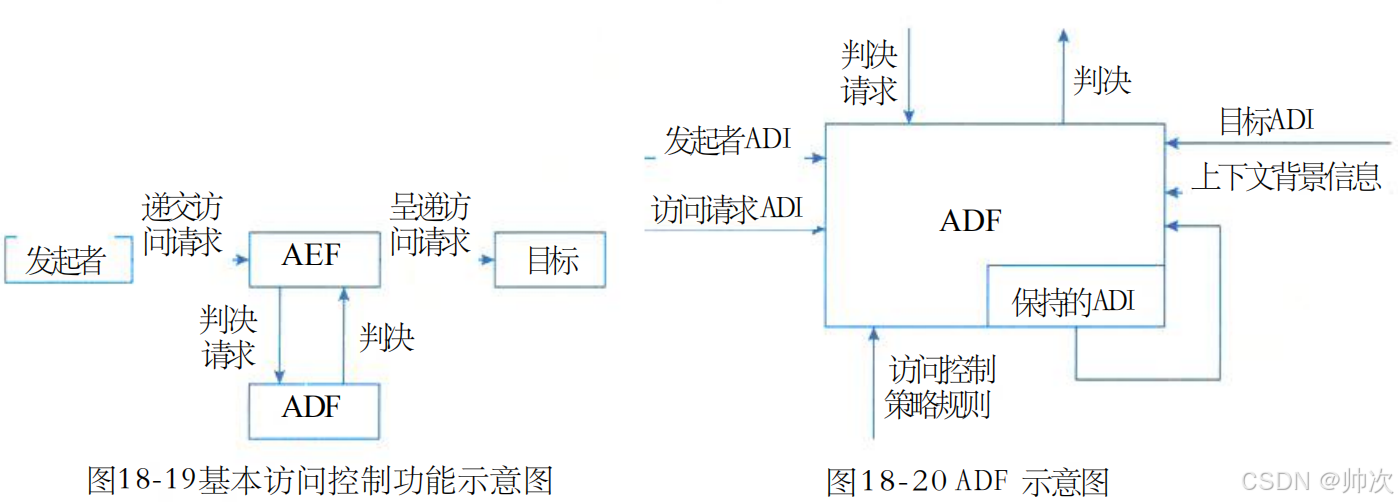 ADF (访问控制判决功能)是一种特定功能,它通过对访问请求、ADI 以及该访问请求的上下文使用访问控制策略规则而做出访问控制判决。