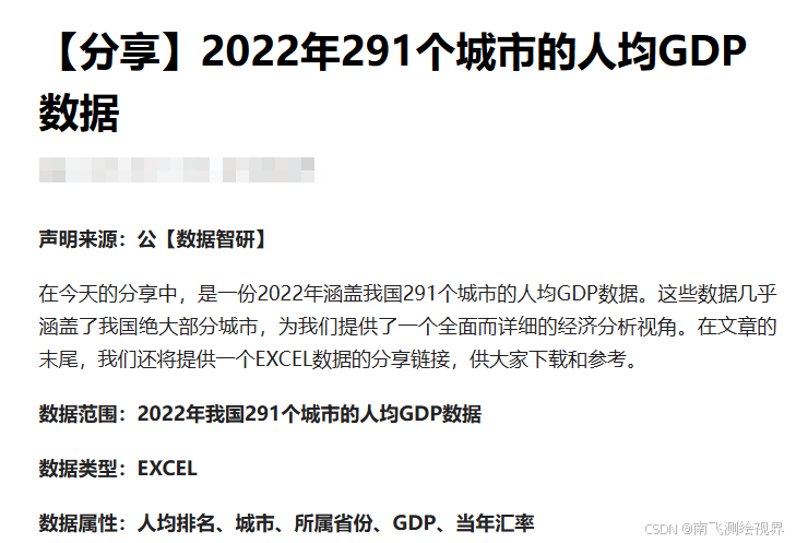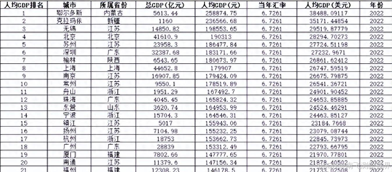 在今天的分享中,是一份2022年涵盖我国291个城市的人均GDP数据。这些数据几乎涵盖了我国绝大部分城市,为我们提供了一个全面而详细的经济分析视角。在文章的末尾,我们还将提供一个EXCEL数据的分享链接,供大家下载和参考。