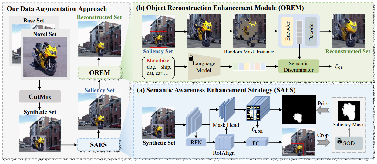 本文提出了一种新的针对FSOD的数据增强方法,通过语义引导的非线性方式解耦了新类对象的前景和背景,并增加了它们的多样性。