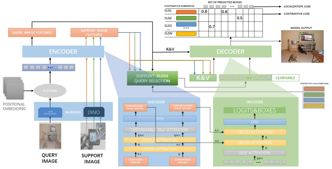方法:论文提出了一种新颖的测试时间少样本目标检测(TIDE)方法,TIDE核心是在配置过程中不需要对模型进行微调,而是引入了一个不对称的架构,用于学习支持实例引导的动态类别分类器。此外,还提供了交叉注意力模块和多尺度调整器来增强模型性能。
