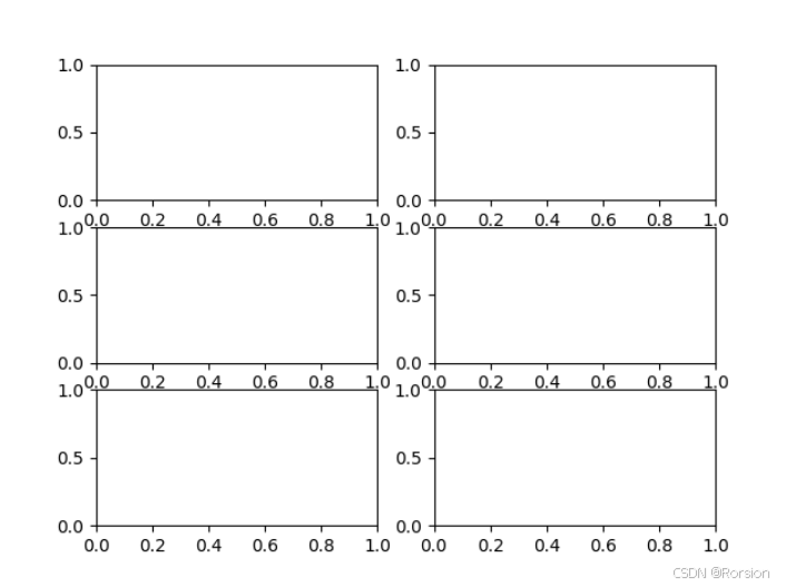 plt.figure(figsize= (10, 6), facecolor = 'r', edgecolor = 'y') plt.subplot(3, 2, 1) plt.subplot(3, 2, 2) plt.show()