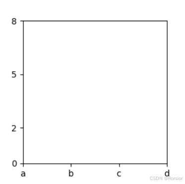 #可以在坐标对应位置写入a,b,c,d plt.figure(figsize=(3, 3)) plt.subplot(1, 1, 1) plt.xticks([0,1,2,3],['a', 'b', 'c', 'd']) # 不显示x 轴刻度 plt.yticks([0,2,5,8]) # 不显示y 轴刻度 plt.show()
