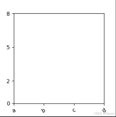 #可以指定旋转角度旋转坐标值 plt.figure(figsize=(3, 3)) plt.subplot(1, 1, 1) plt.xticks([0,1,2,3],['a', 'b', 'c', 'd'], rotation = 30) # 不显示x 轴刻度 plt.yticks([0,2,5,8]) # 不显示y 轴刻度 plt.show()