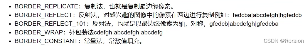 cv2.BORDER_CONSTANT:使用固定的边界值。