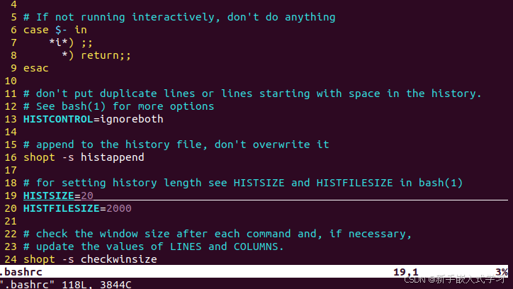 修改.bashrc文件中HISTSIZE的值,将终端退出:可以永久修改