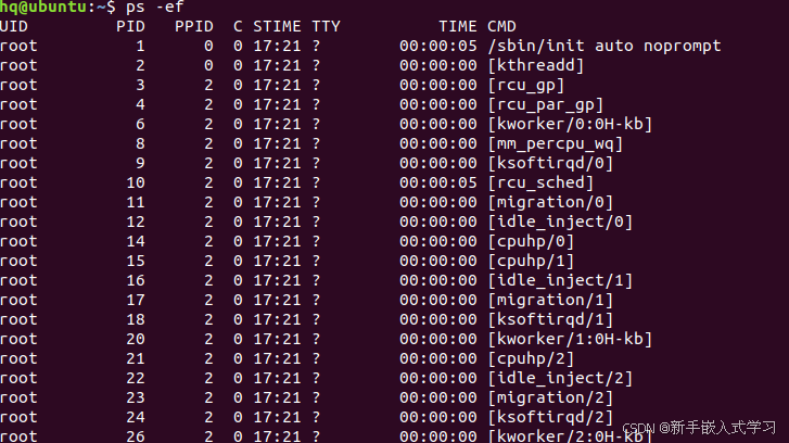 ps -ef: 显示当前系统中运行的进程(包含进程的父进程号PPID)
