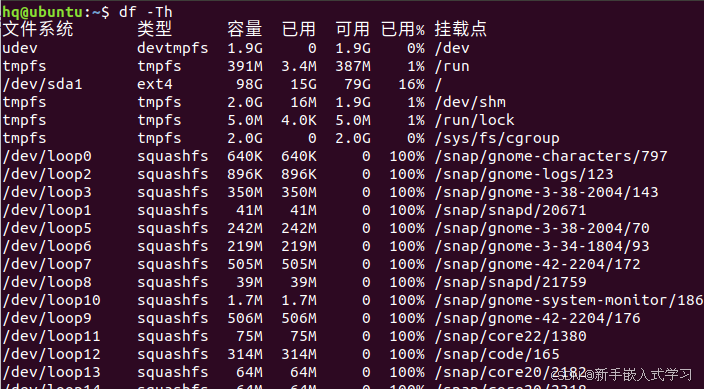 sudo mount -t 设备类型 设备名称 挂载点: 挂载设备