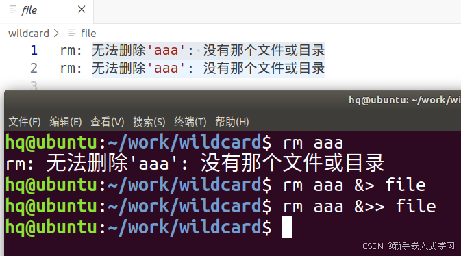 2> 或者&>文件名: 将有命令产生的错误信息输出到文件中