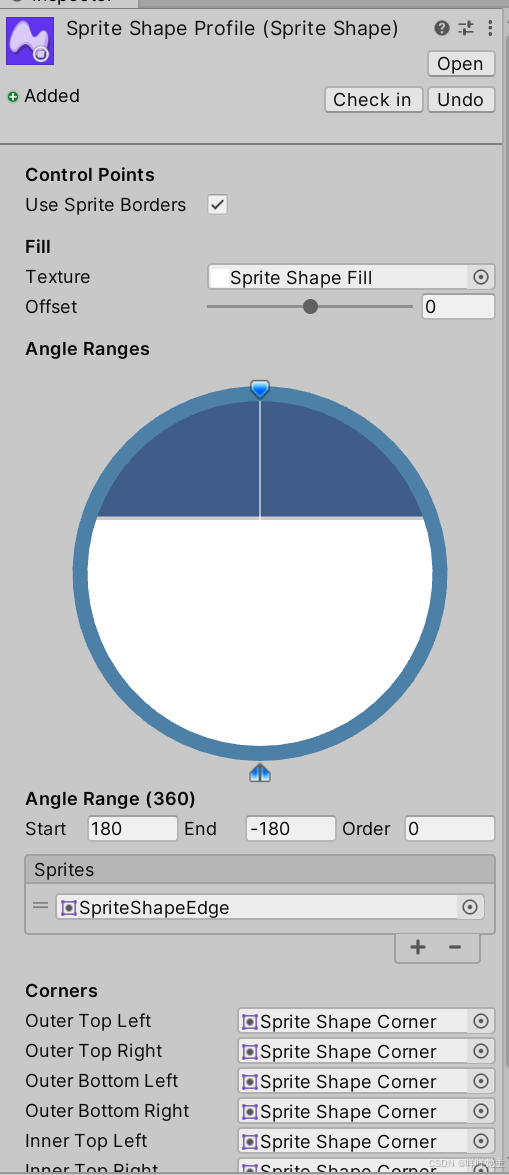 创建一个Sprite Shape Profile,并了解其功能:Sprite Shape Profile | 2D SpriteShape | 10.0.6 (unity3d.com)