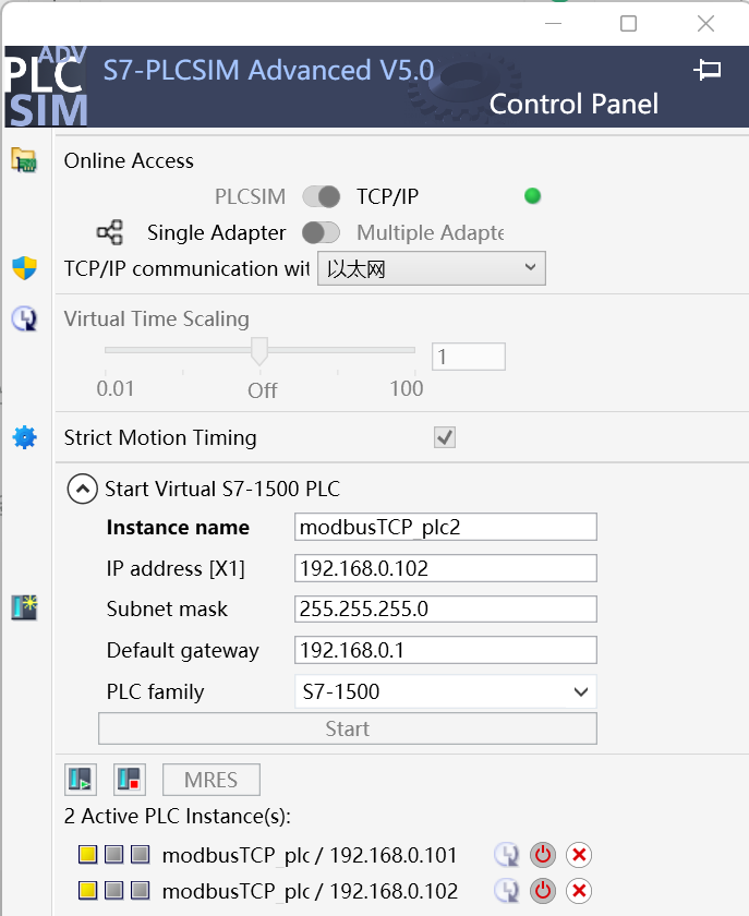 ①通过Mthings配置端口连接信息(IP地址与仿真的PLC IP地址保持一致)