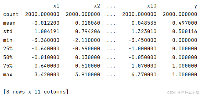 从上图可以看到,总共有11个变量,数据中无缺失值,共2000条数据。