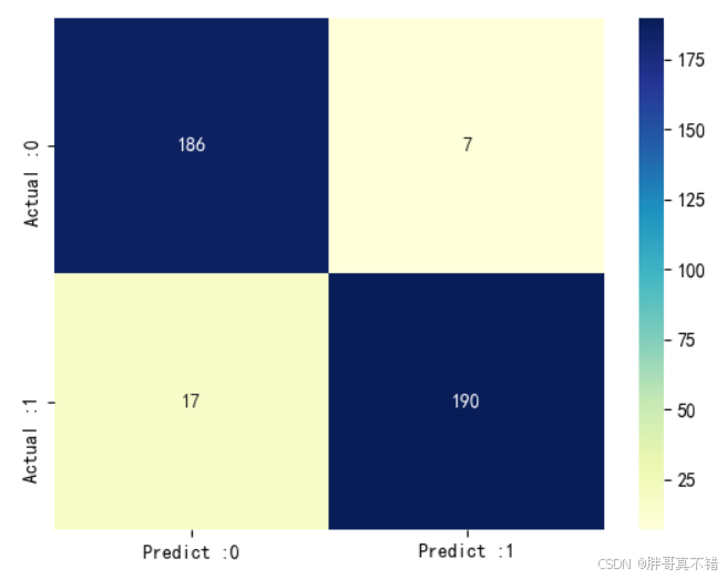 从上图可以看出,实际为0预测不为0的 有7个样本;实际为1预测不为1的 有17个样本,整体预测准确率良好。
