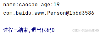 class Person { private String name; private int age; public Person(String name,int age) { this.age = age; this.name = name; } public void show() { System.out.println("name:"+name+" " + "age:"+age); } } public class Main { public static void main(String[] args) { new Person("caocao",19).show();//通过匿名对象调用方法 } } class Person { private String name; private int age; public Person(String name,int age) { this.age = age; this.name = name; } public void show() { System.out.println("name:"+name+" " + "age:"+age); } } public class Test { public static void main(String[] args) { Person person = new Person("caocao",19); person.show(); System.out.println(person); } } 运行结果: