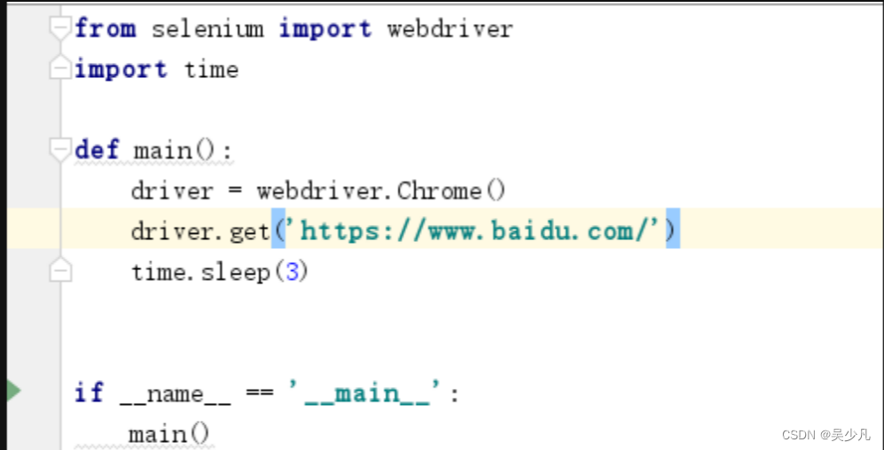 import time from selenium import webdriver driver = webdriver.Chrome() driver.get("https://www.baidu.com") time.sleep(2)