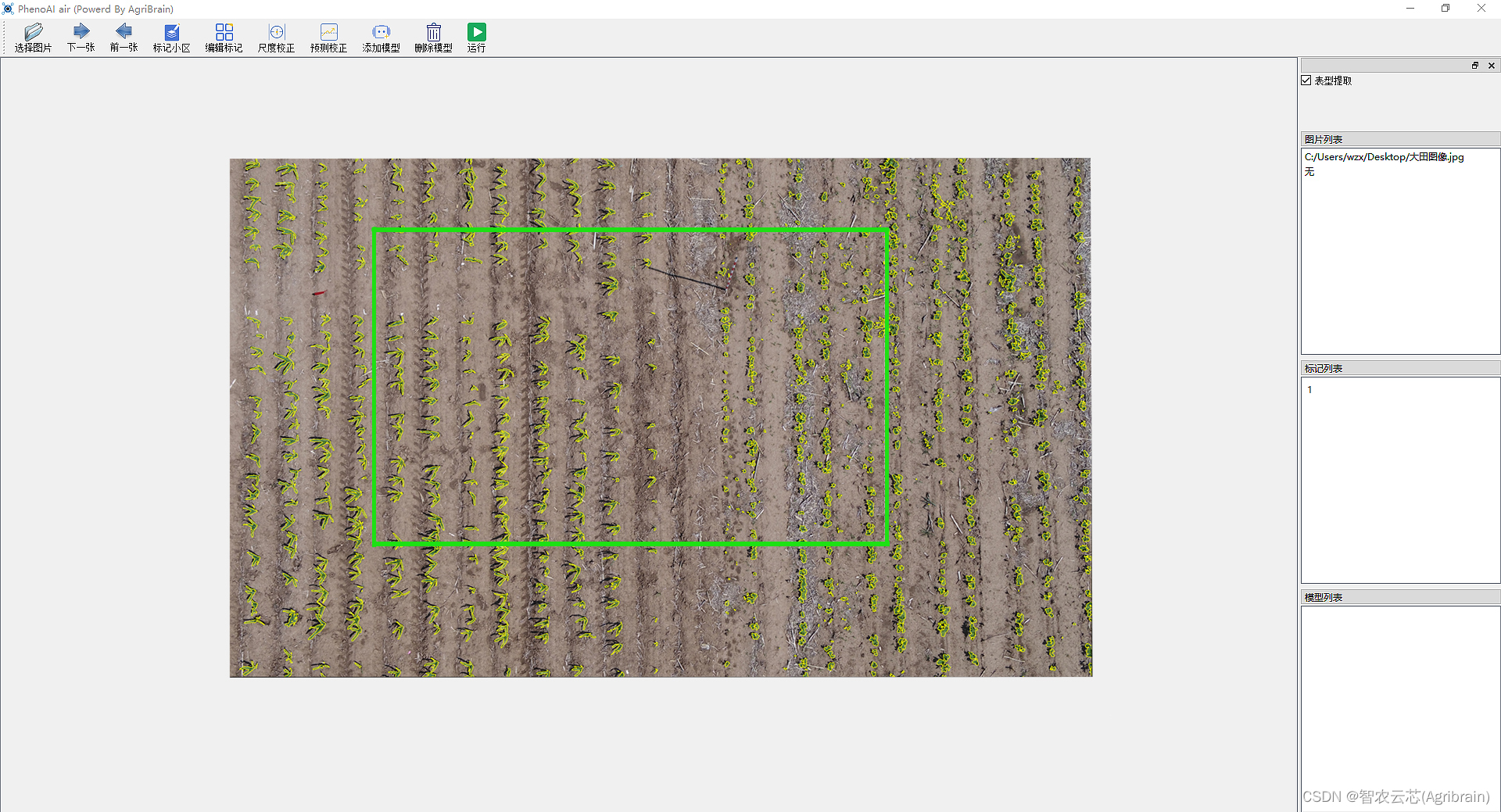 步骤三:使用PhenoAI air分析系统对图像进行数据分析,仅需点击三步即可(①标记小区②尺度校正③点击分析)