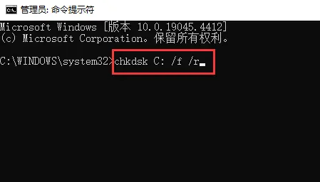 第二步:在命令提示符中输入 chkdsk C: /f /r,其中“C:”表示要检查的硬盘分区。参数 /f 用于修复硬盘错误,参数 /r 用于查找坏扇区并恢复可读信息。按下回车键,系统会提示是否在下次重启时进行检查,输入“Y”并重启电脑。