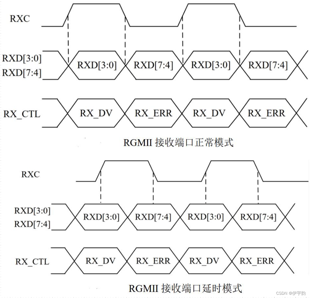 RGMII 的时序分为两种:延时模式和非延时模式,可以通过配置PHY芯片改变模式。 用的比较多的模式是延时模式,一般PHY芯片默认配置为延时模式。