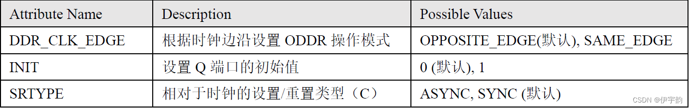 除了这些端口外, ODDR原语还包含一些可用属性: