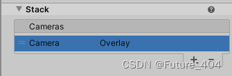 Overlay(叠加):使用了Oveylay的相机会把它渲染出的图形叠加到其他相机之上,使用方法是在主摄像机的Stack部分添加该相机,如下图