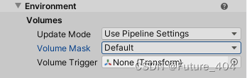 在这里可以设置Update Mode(体积的更新方式)、Volume Mask(体积的遮罩),Volume Trigger(体积的触发方式)