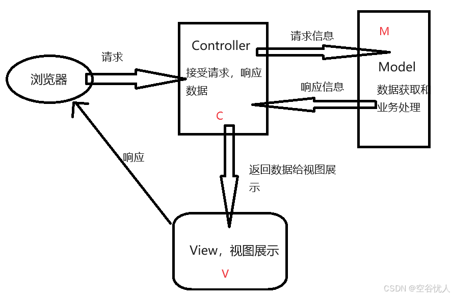 注:MVC是一种思想,而Spring MVC是在MVC模式的基础上实现的一种Web框架,即SpringMVC是一种具体实现。它利用了MVC的优势并添加了更多的功能和便利性,使得开发者可以更轻松地构建和维护现代化的Web应用程序。
