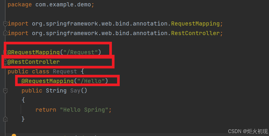 @RestController是Spring Framework中的一个注解,它主要用于标识一个类是RESTful服务的控制器(Controller)。具体来说,@RestController注解是@Controller和@ResponseBody注解的组合体,它结合了这两个注解的功能。(了解即可,此处暂时不过多解释)