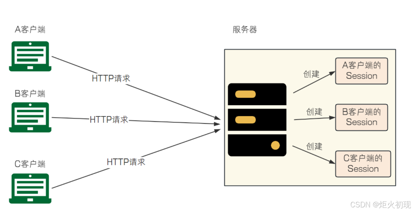在计算机领域, 会话是⼀个客⼾与服务器之间的不中断的请求响应. 对客⼾的每个请求,服务器能够识 别出请求来⾃于同⼀个客⼾. 当⼀个未知的客⼾向Web应⽤程序发送第⼀个请求时就开始了⼀个会话. 当客⼾明确结束会话或服务器在⼀个时限内没有接受到客⼾的任何请求时,会话就结束了. 服务器同⼀时刻收到的请求是很多的. 服务器需要清楚的区分每个请求是从属于哪个⽤⼾, 也就是属于 哪个会话, 就需要在服务器这边记录每个会话以及与⽤⼾的信息的对应关系. Session是服务器为了保存⽤⼾信息⽽创建的⼀个特殊的对象.