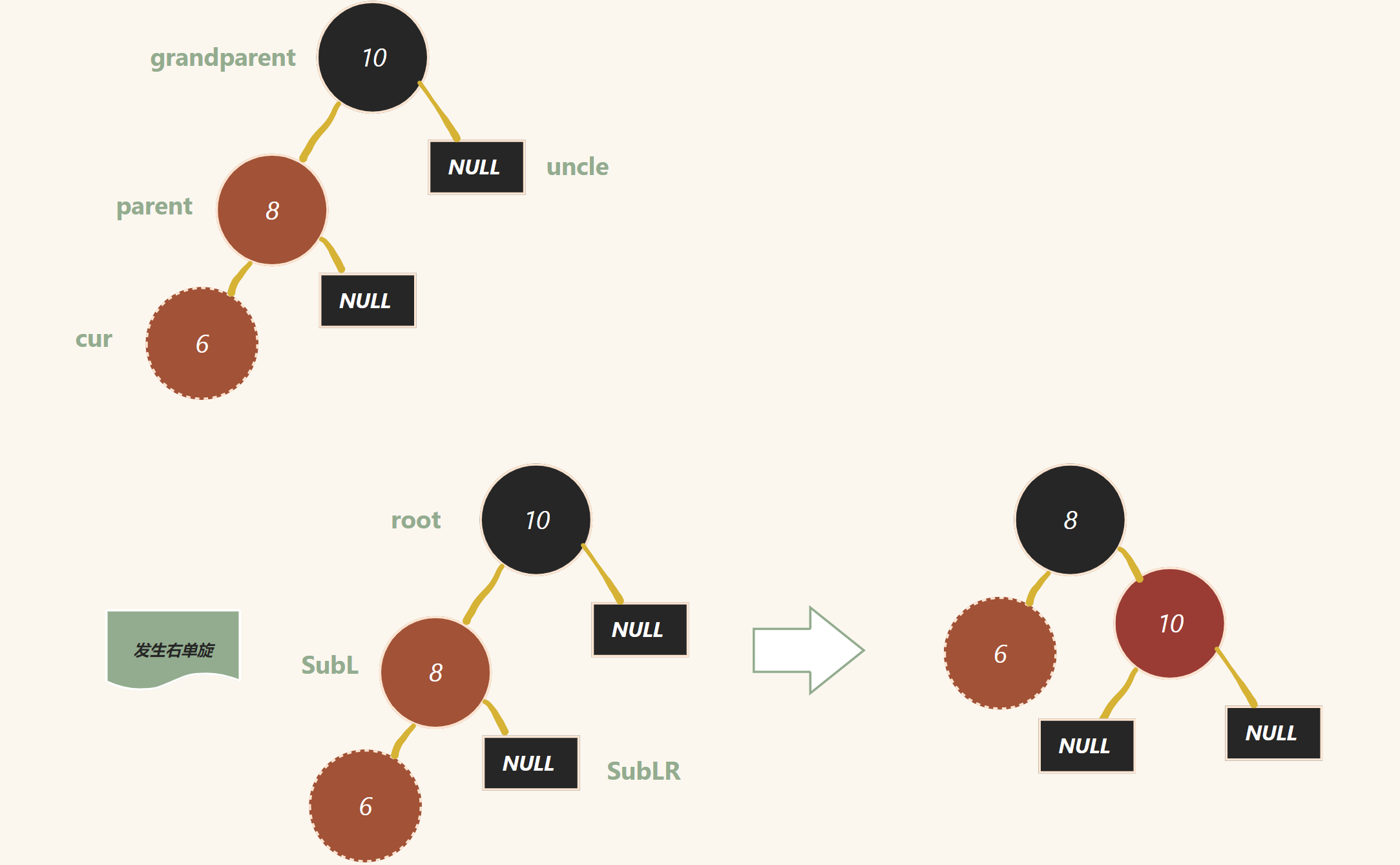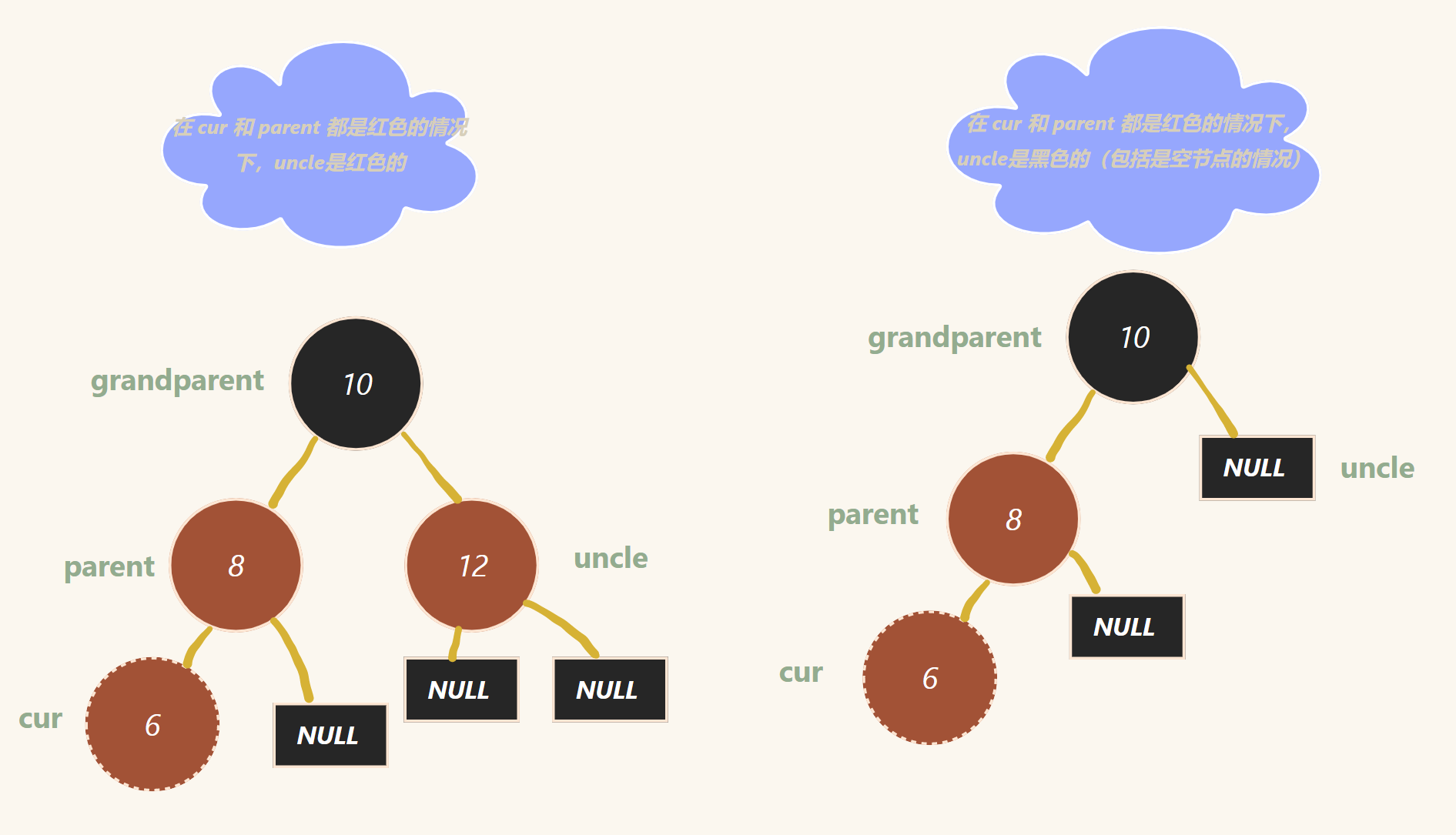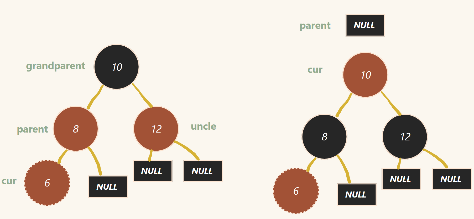 根节点的颜色可能会在过程中更改(如上述右图),一定要在最后改回成黑色