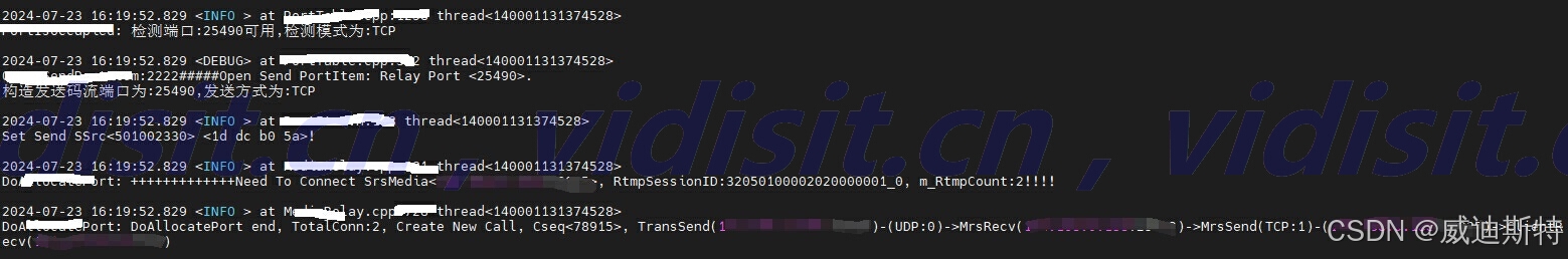 请求实时视频产生的部分日志,请求时间为16:19:52,如下图所示: