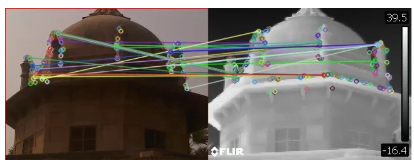 为了执行配准,我们要做的是找出将像素从可见图像映射到热图像的特征点,这在本文中进行了解释,一旦我们获得了一定数量的像素,我们就会停止并开始映射这些像素,从而完成配准过程完成了。