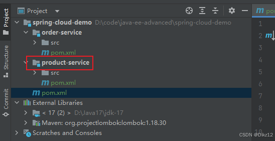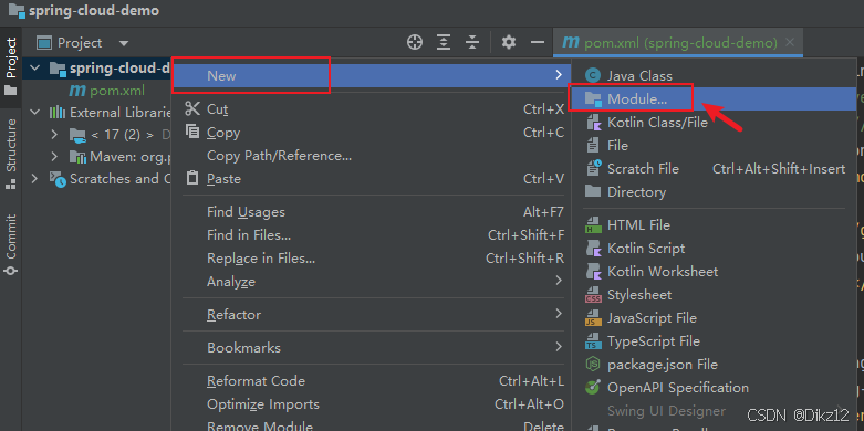 创建好之后,就可以在spring-cloud-demo中的pom文件看到多了一个