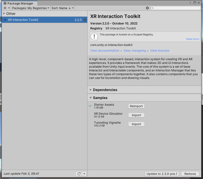 打开Package Manager,在右侧面板中点开Sample列表,导入Starter Assets。