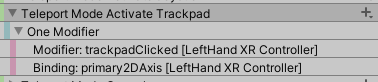 上文说过了组合按键,这回来实际应用一下,我的设备是HTC Vive,手柄不是摇杆而是追踪板,当想要实现追踪板按下前端传送的时候,就需要组合输入了