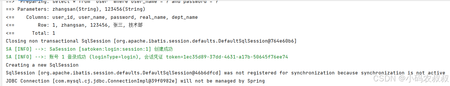 SA-Token在控制台中,也输出了相关的登录登出的日志信息