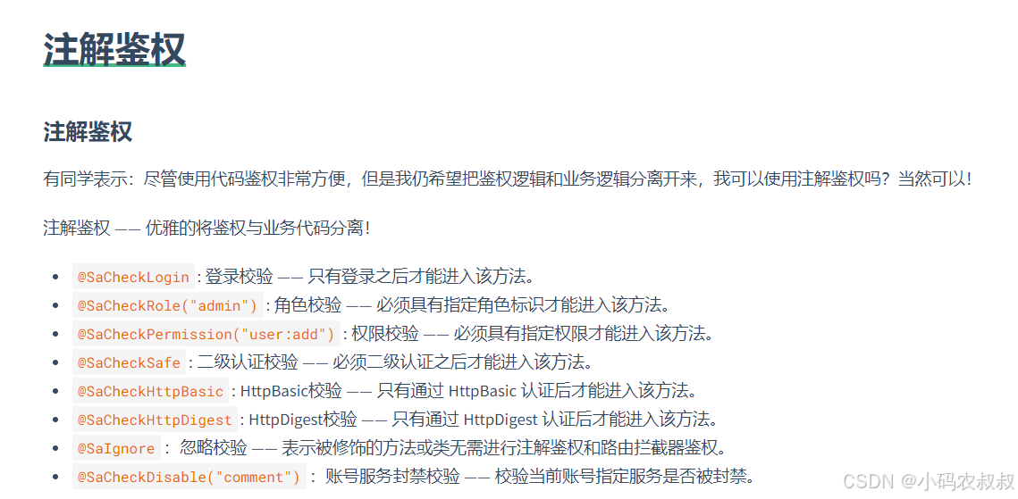 事实上,SA-Token提供的不仅有注解的方式,也有API的方式进行权限校验,更详细的可以参阅文档:Sa-Token