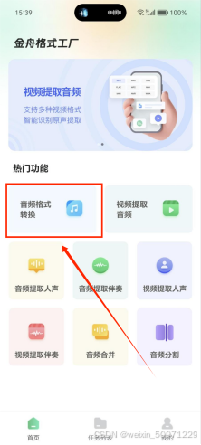 1.打开金舟格式工厂APP,选择【音频格式转换】,勾选刚下载的OGG音频