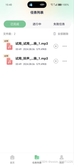 4.设置完毕后,点击【音频格式转换】,前往【任务列表】查看转换好的mp3音频文件