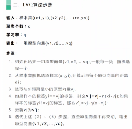 - 每个样例有类别标签,即 LVQ 是一种监督式学习;