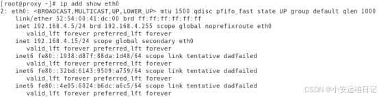 ① Porxy查看IP(因优先级高,选举为MASTER,获得VIP192.168.4.15)