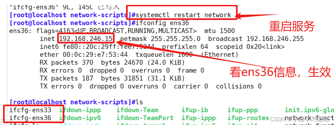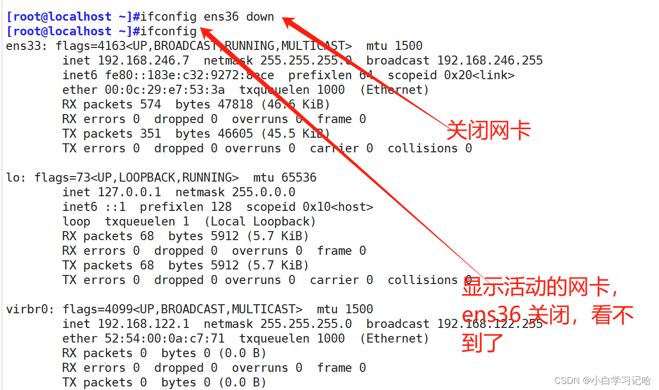 断开ens33网卡,记得重启下网卡服务 systemctl restart network