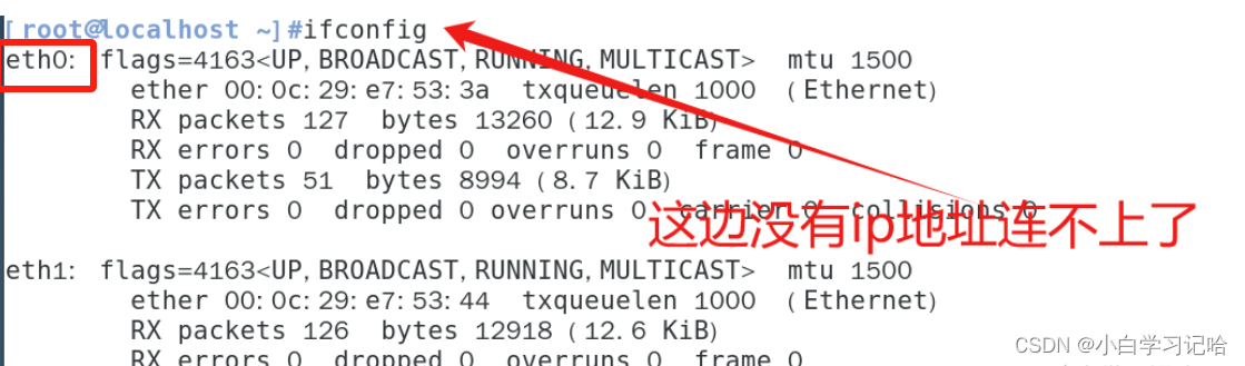 1. ifconfig 网卡名称——显示具体网卡的详细信息编辑