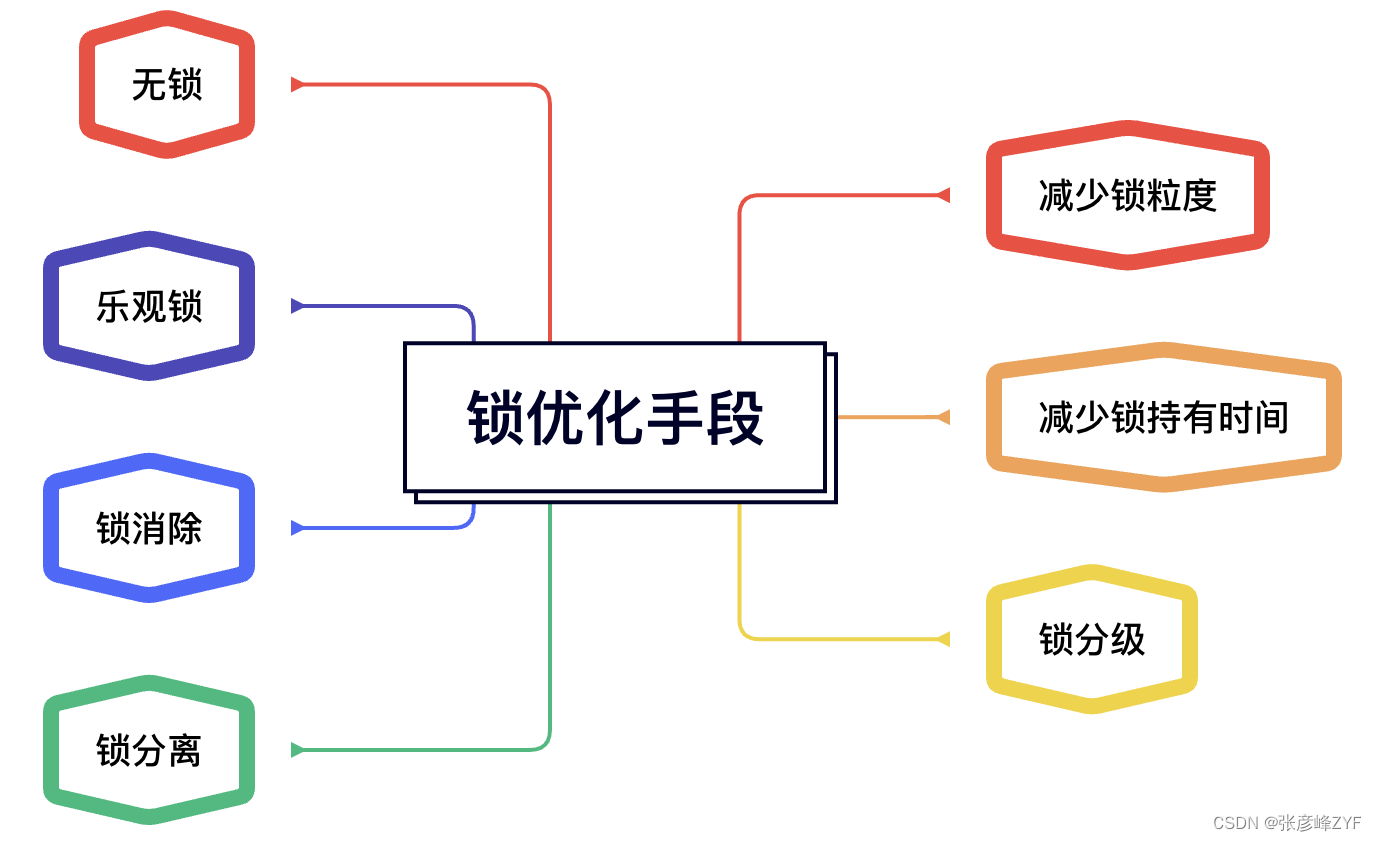 Java 中有两种加锁的方式:一种就是常见的synchronized 关键字,另外一种,就是使用 concurrent 包里面的 Lock。针对这两种锁,JDK 自身做了很多的优化,它们的实现方式也是不同的。这个在上文中已经讲了很多,我们体会的已经比较深了,现在站在巨人的肩膀上总结一下优化的一般思路:减少锁的粒度、减少锁持有的时间、锁分级、锁分离 、锁消除、乐观锁、无锁等。