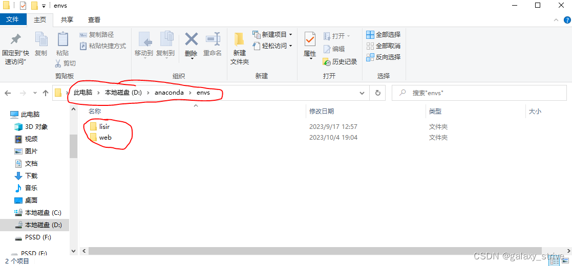 这一步完成后,就会在d盘的anaconda目录下的envs有自己创建好的虚拟环境名称。如下图